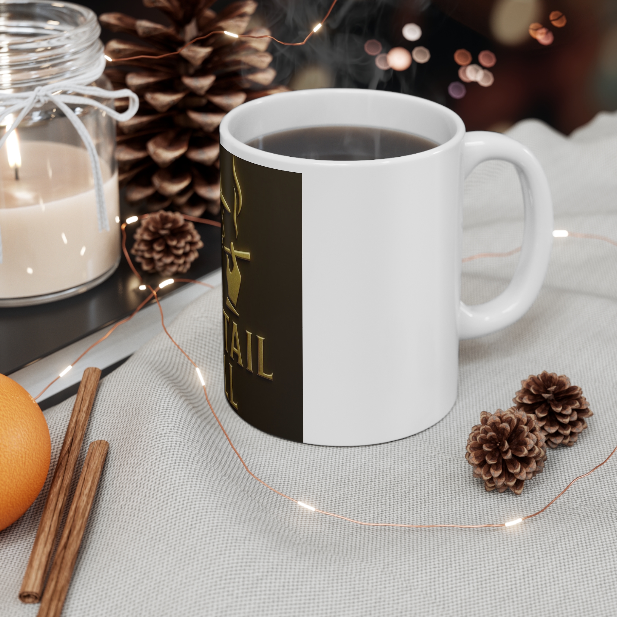 A warm, old-salon kind of mug for slow mornings and late-night plotting. The rich, bronze-toned emblem of a hat-wearing silhouette with a ponytail and a smoldering cigar wraps the white ceramic body, giving each sip a little vintage swagger. The weight and C-handle feel familiar in your hand; colors stay bold through daily use thanks to ORCA coating and modern print methods. Pull this mug out when you want your coffee to match a deliberate, low-key mood — whether that’s sketching character ideas, settling in for a good book, or reworking your next plan.